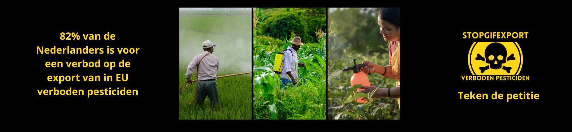 PAN-NL is de campagne StopGifExport.nl gestart en roept Nederlanders op om de petitie te ondertekenen. Deze zal op een later tijdstip aan de politiek worden aangeboden. PAN-NL en de ondersteunende organisaties willen dat de overheid een eind maakt aan deze immorele export door Nederlandse bedrijven. De cijfers maken duidelijk dat er breed maatschappelijk draagvlak is voor een consistente aanpak van gevaarlijke bestrijdingsmiddelen. “Wat in Nederland verboden is vanwege de risico’s voor onze boeren, natuur en consumenten, zou niet zonder meer naar andere landen geëxporteerd mogen worden,” zegt Margriet Mantingh, voorzitter van PAN-NL. “Belgie en Frankrijk hebben al maatregelen genomen, nu Nederland nog. Naast de gevaren voor lokale boeren en het milieu in het buitenland is een verbod ook nodig om onze eigen boeren te ondersteunen die deze middelen niet mogen gebruiken. Via import komen die verboden pesticiden weer terug bij ons, op fruit, groenten en op bloemen”