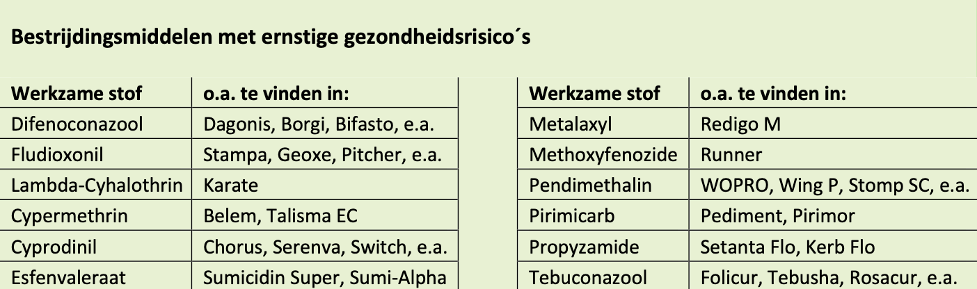 Hier zijn de gevaren voor gezondheid en milieu van de 12 meest giftige pesticiden (KvV) inzichtelijk.